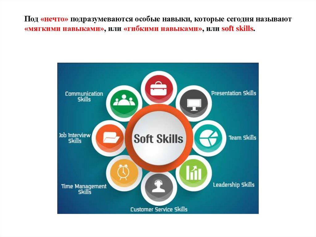 Под «нечто» подразумеваются особые навыки, которые сегодня называют«мягкими навыками», или «гибкими навыками», или soft skills.