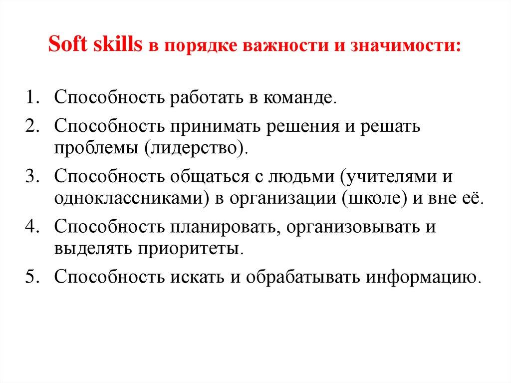 Soft skills в порядке важности и значимости:1. Способность работать в команде.