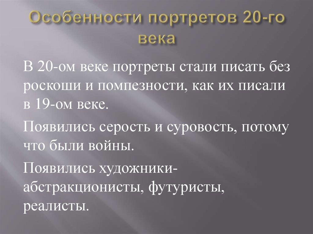 В 20-ом веке портреты стали писать безроскоши и помпезности, как их писали