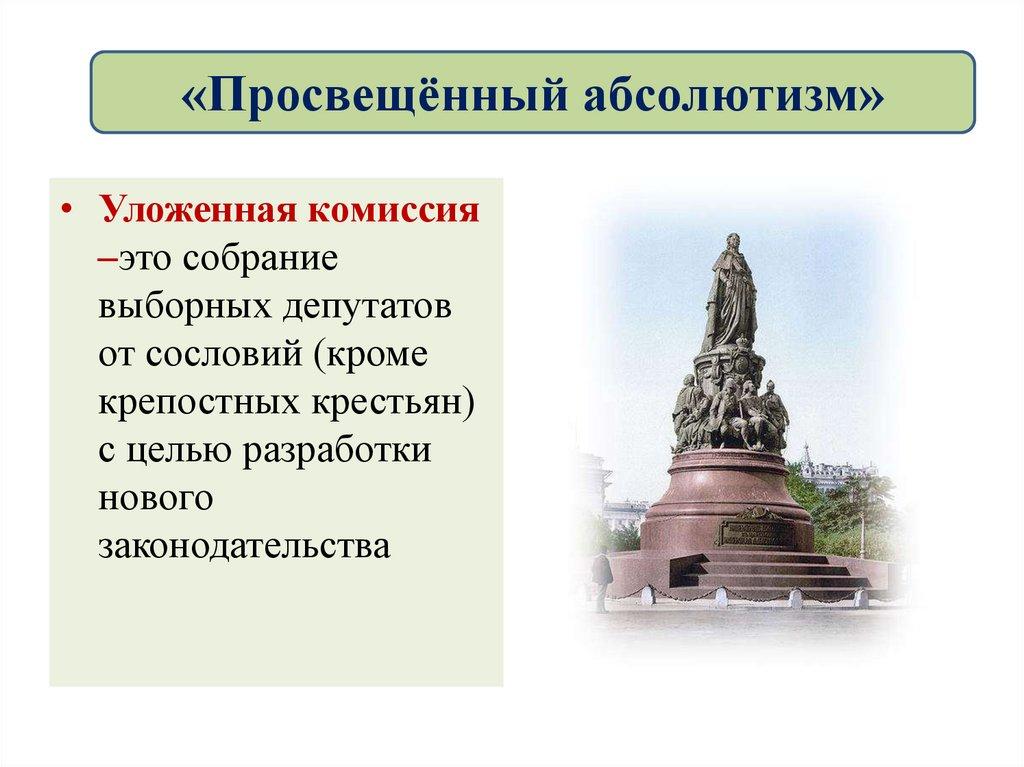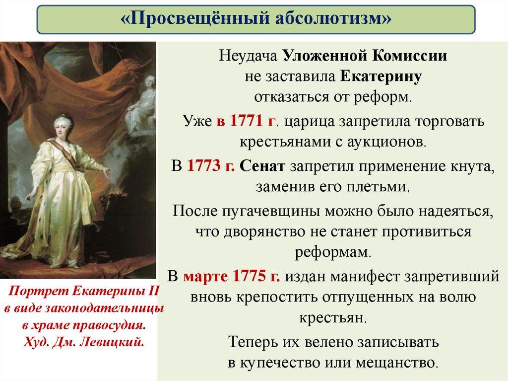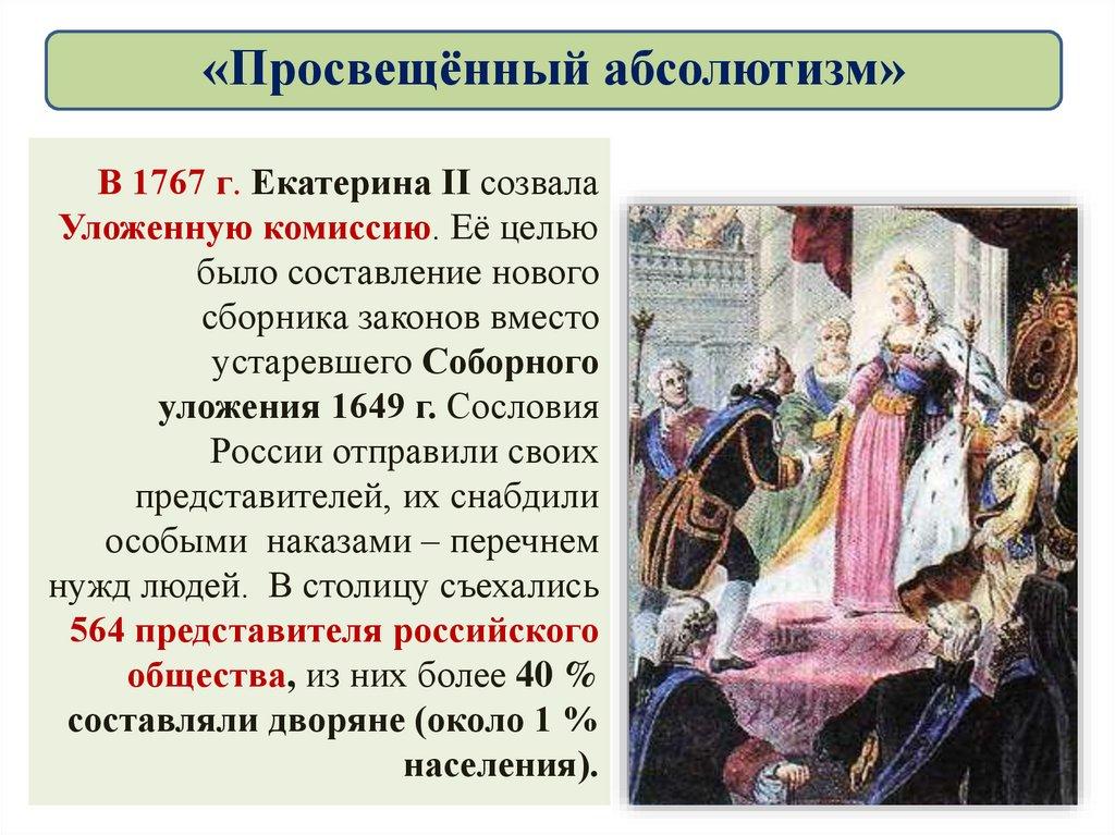 «Просвещённый абсолютизм»Вместо выработки единых законов, Комиссия стала ареной