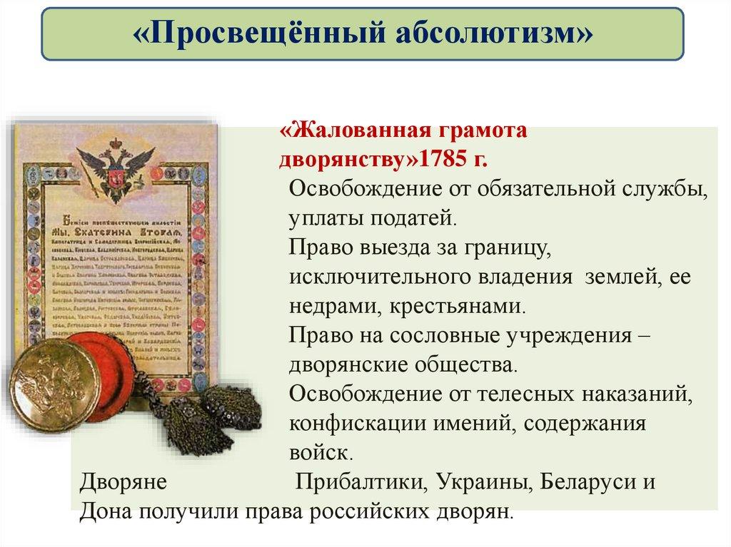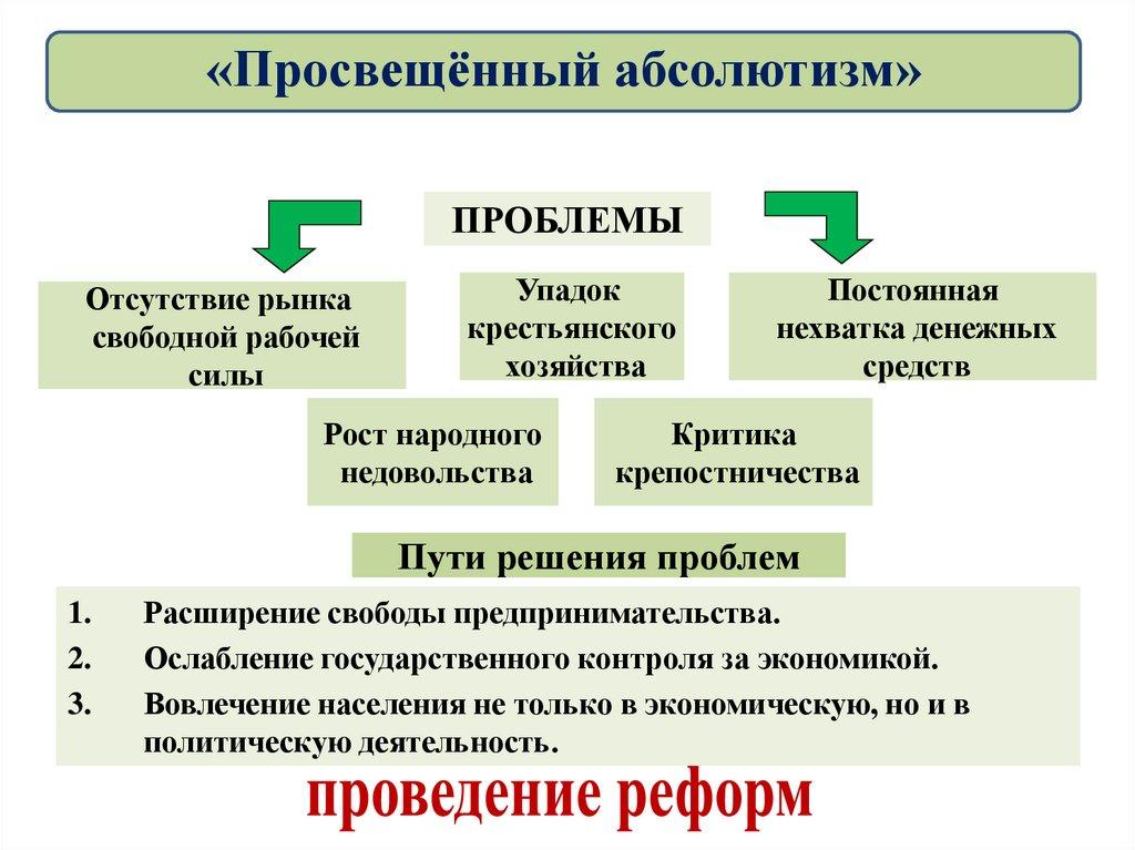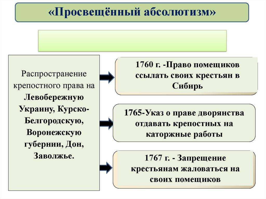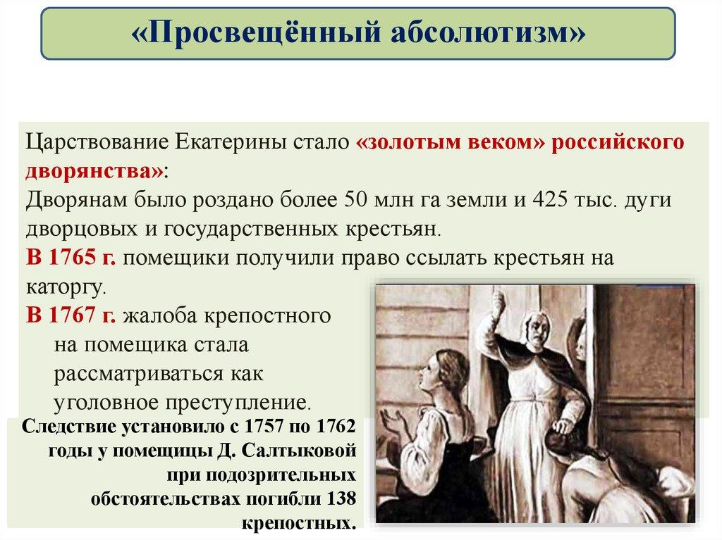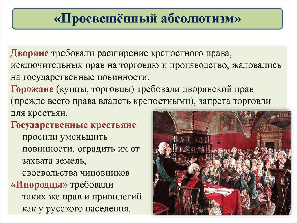 «Просвещённый абсолютизм»Дворяне требовали расширение крепостного права,