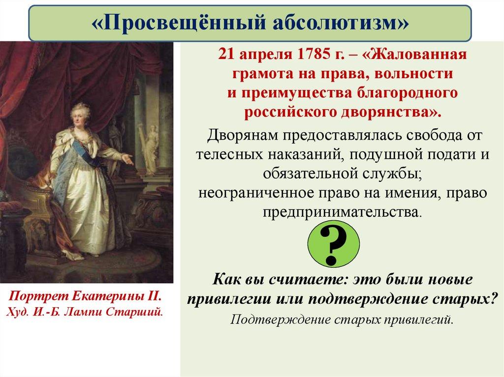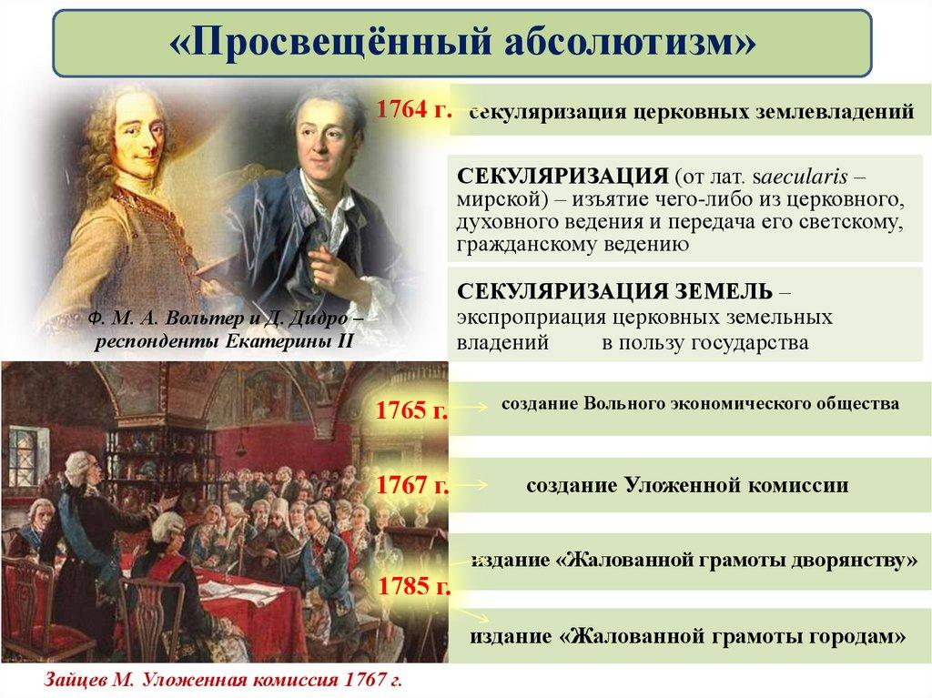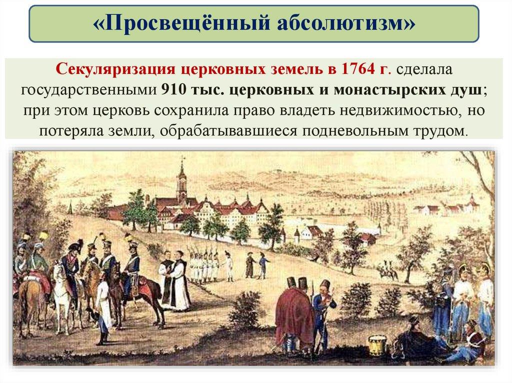 «Просвещённый абсолютизм»1764 г. секуляризация церковных землевладений