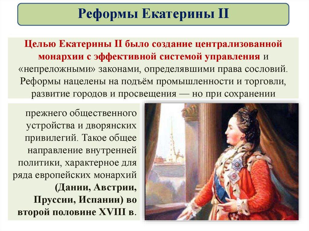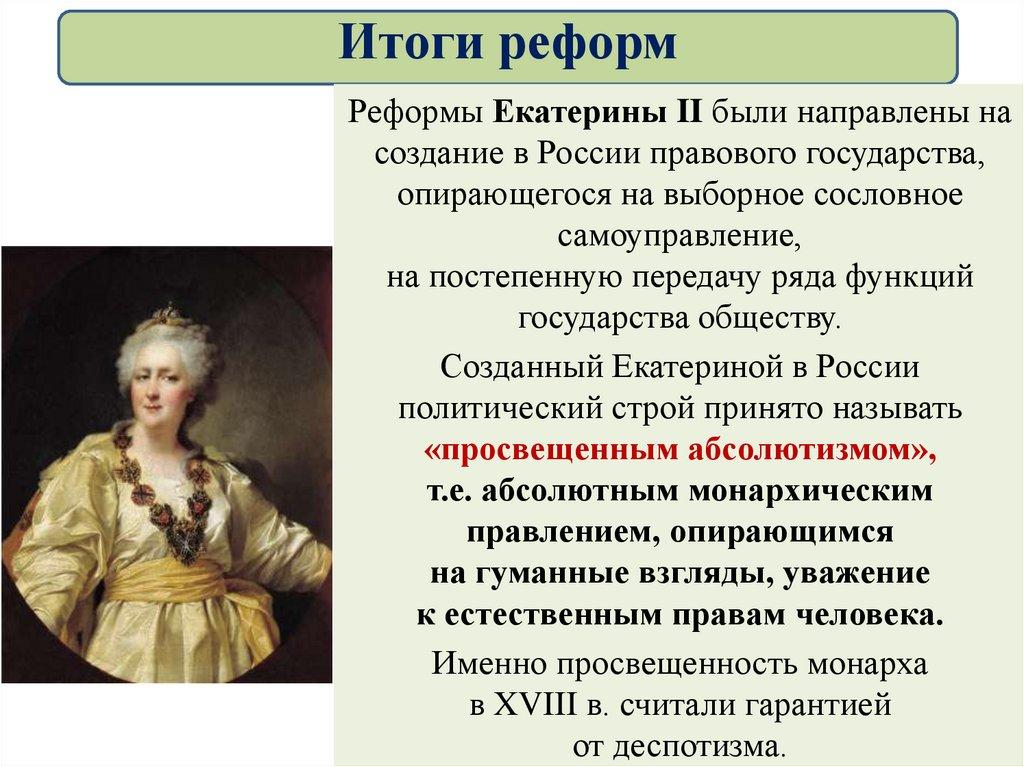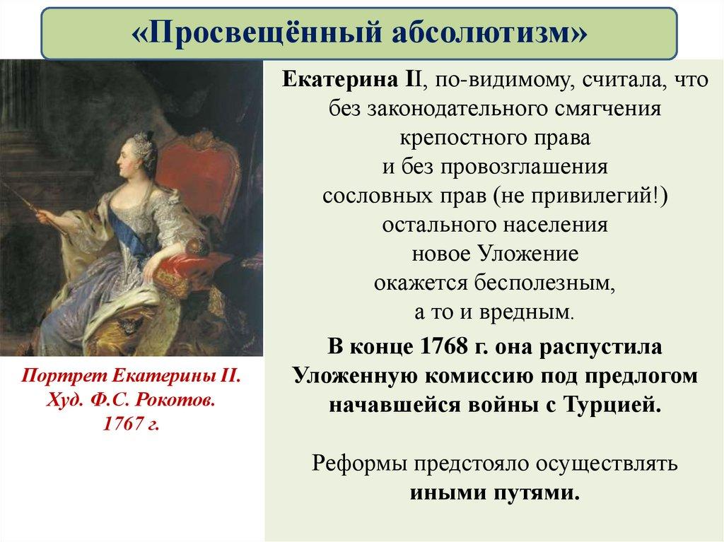 «Просвещённый абсолютизм»В 1767 г. Екатерина II созвала