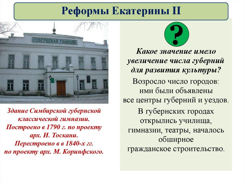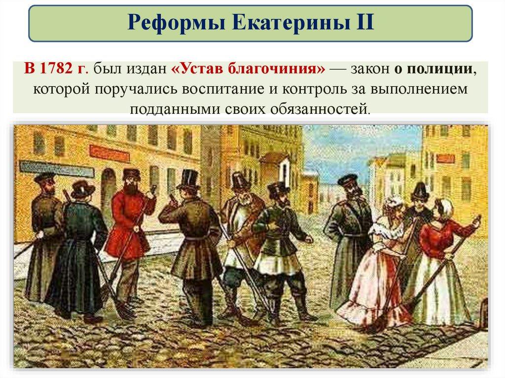 Реформы Екатерины IIВ 1782 г. был издан «Устав благочиния» — закон о полиции,