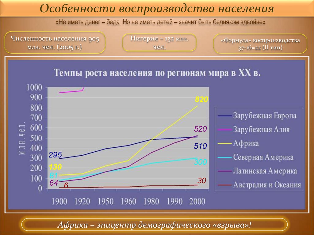 Особенности воспроизводства населения«Не иметь денег – беда. Но не иметь детей – значит быть бедняком вдвойне»