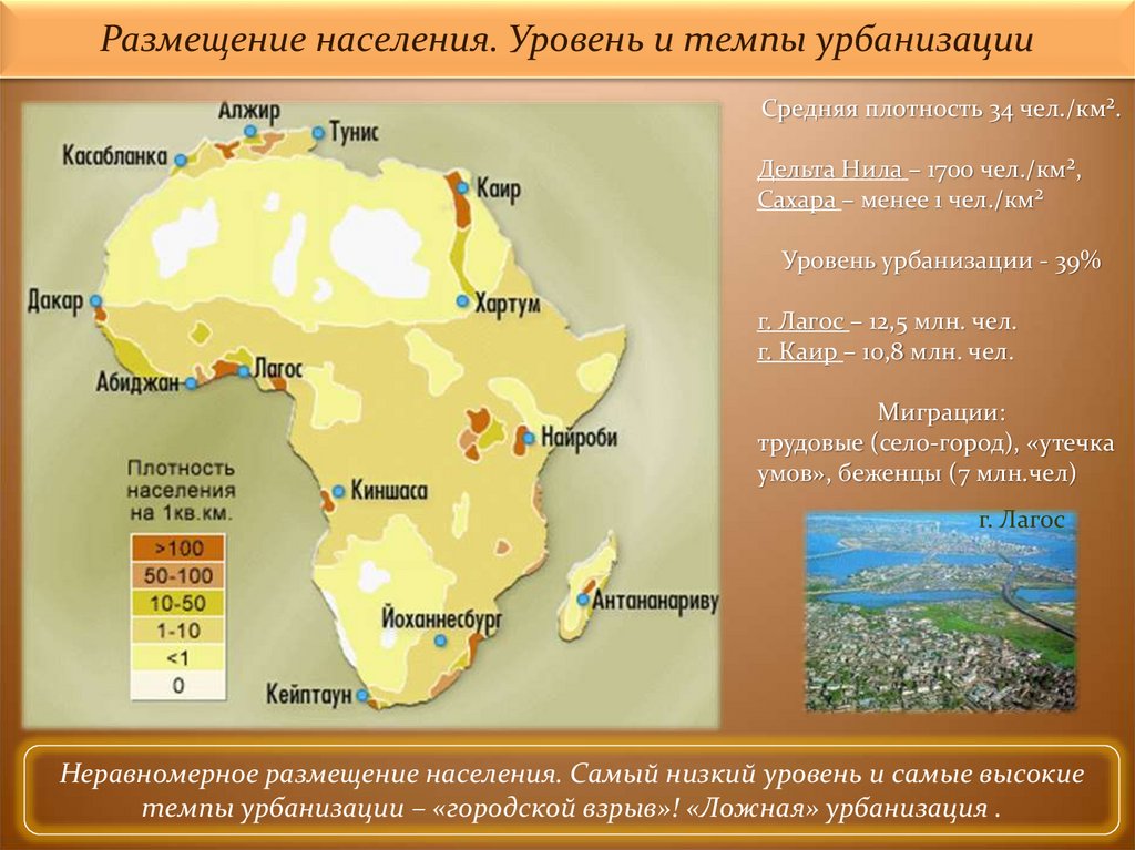 Размещение населения. Уровень и темпы урбанизацииСредняя плотность 34 чел./км².