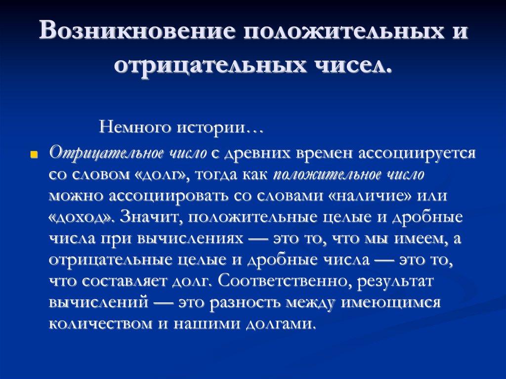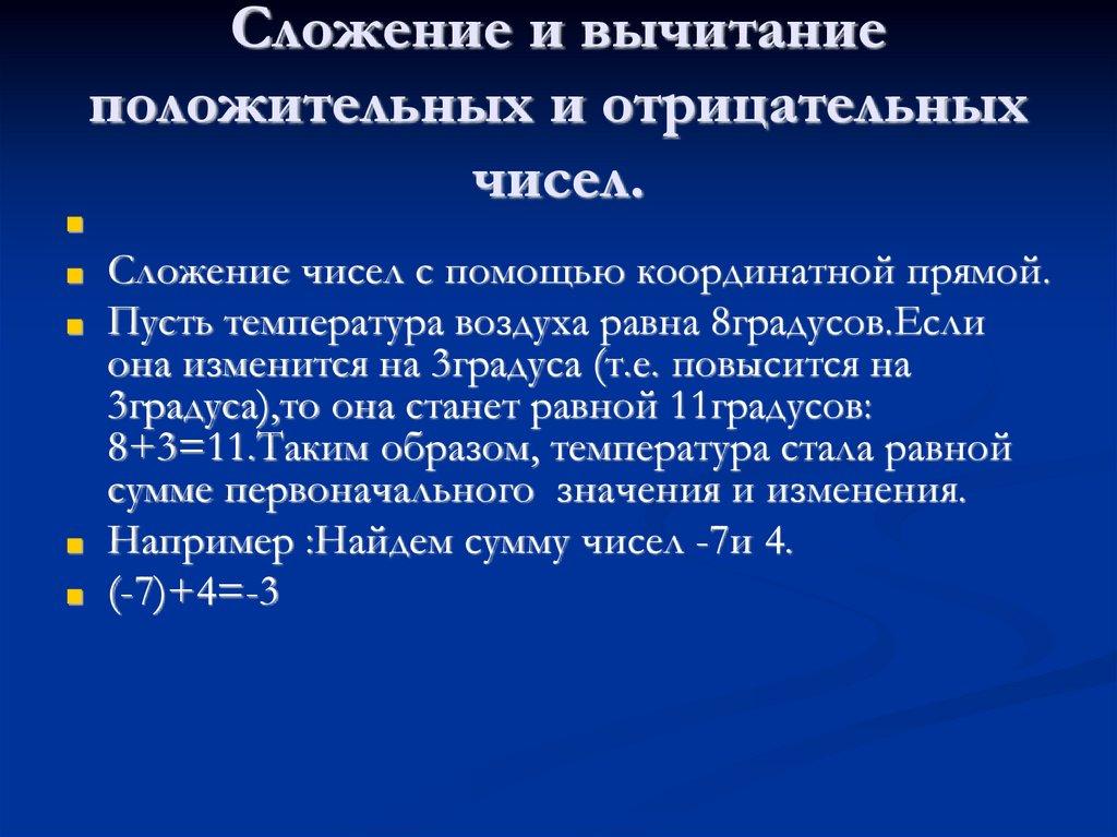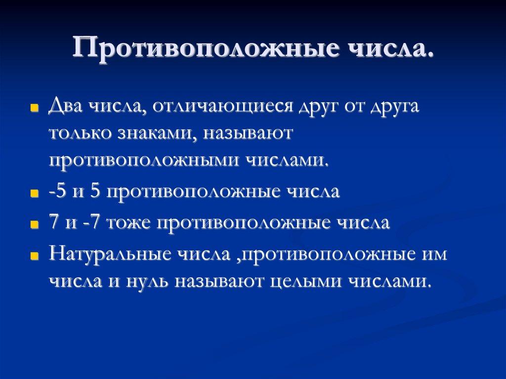 Числа со знаком «+» - положительные, а со знаком «-» отрицательные.