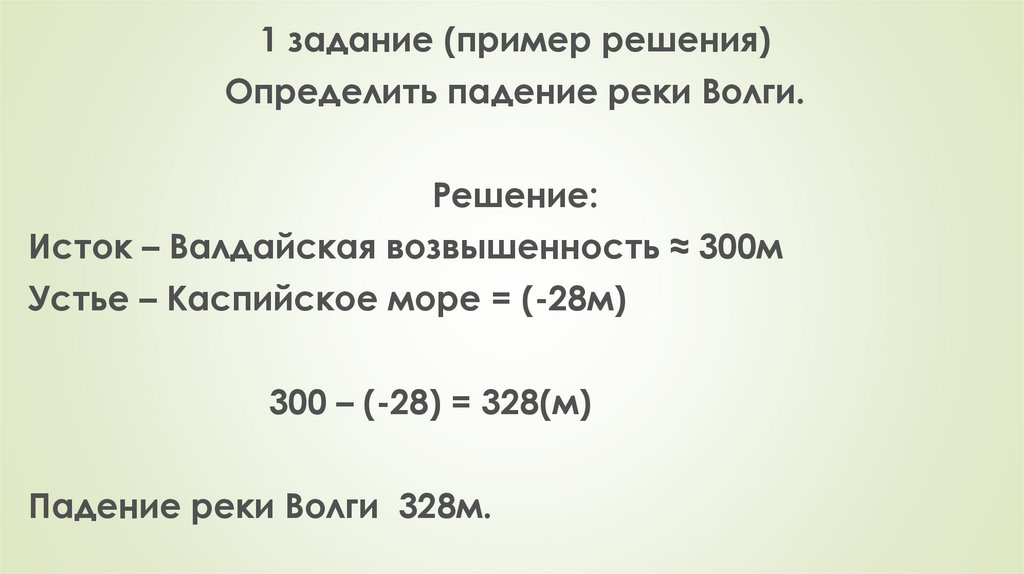 1 задание (пример решения)Определить падение реки Волги.