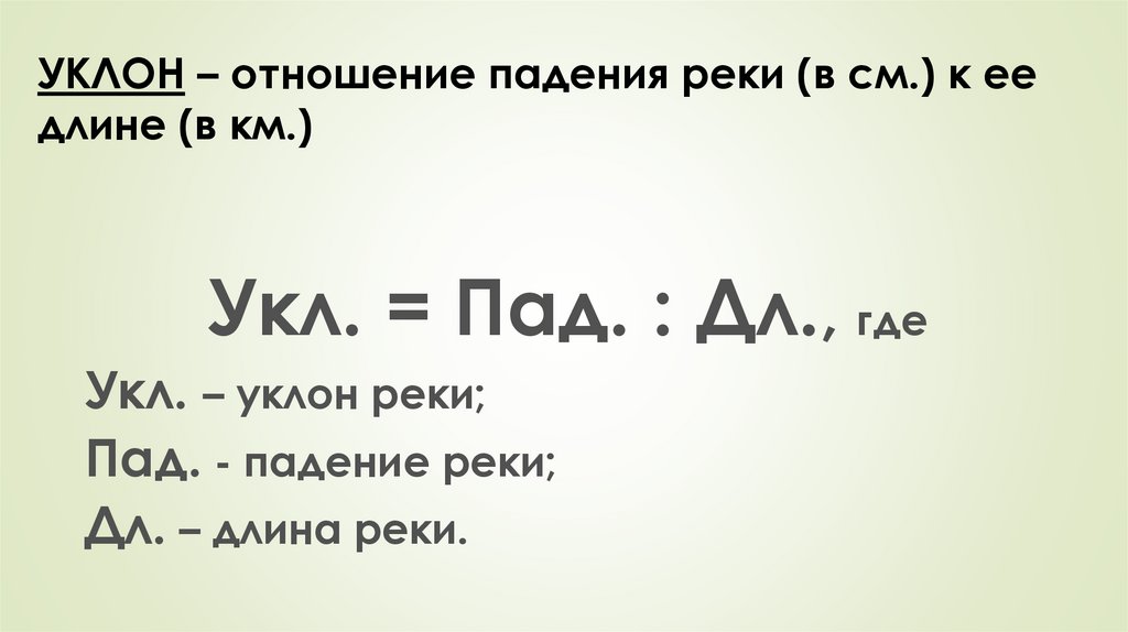 УКЛОН – отношение падения реки (в см.) к еедлине (в км.)
