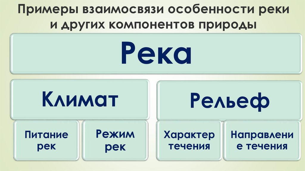 Примеры взаимосвязи особенности рекии других компонентов природы