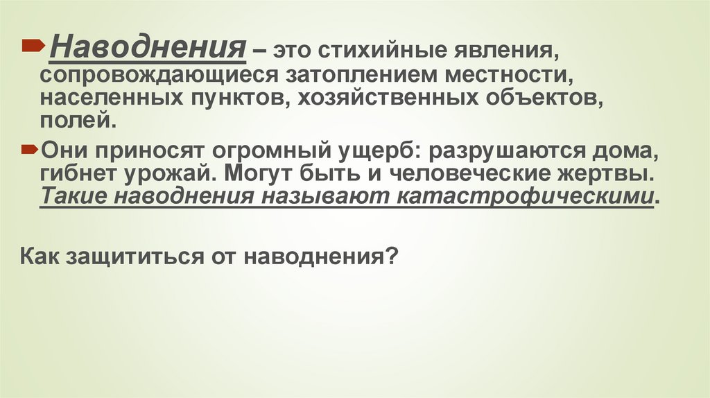Наводнения – это стихийные явления,сопровождающиеся затоплением местности,