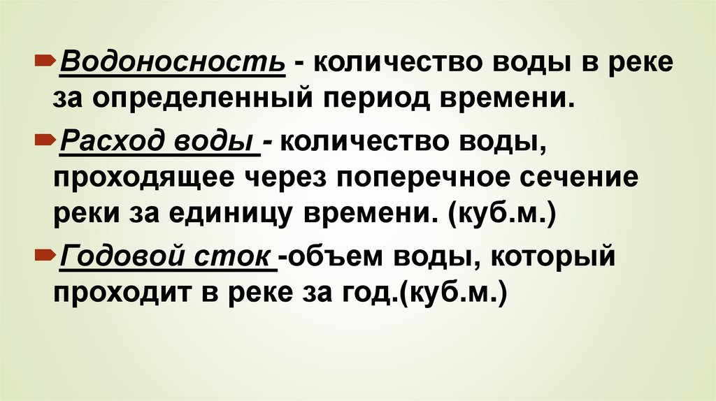 Водоносность - количество воды в рекеза определенный период времени.