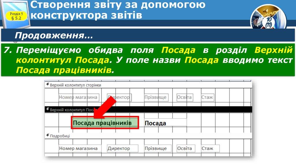 7. Переміщуємо обидва поля Посада в розділ Верхній