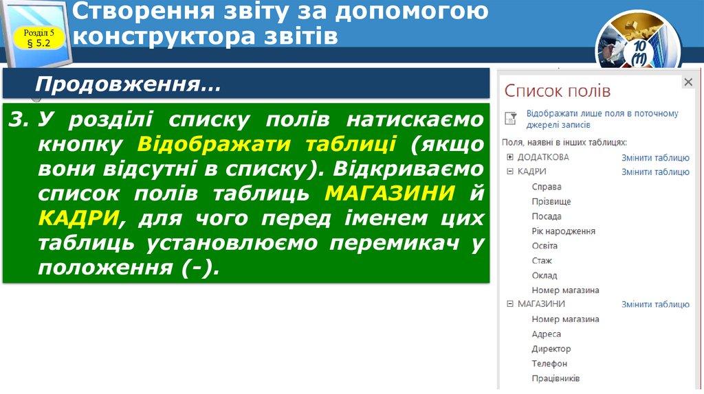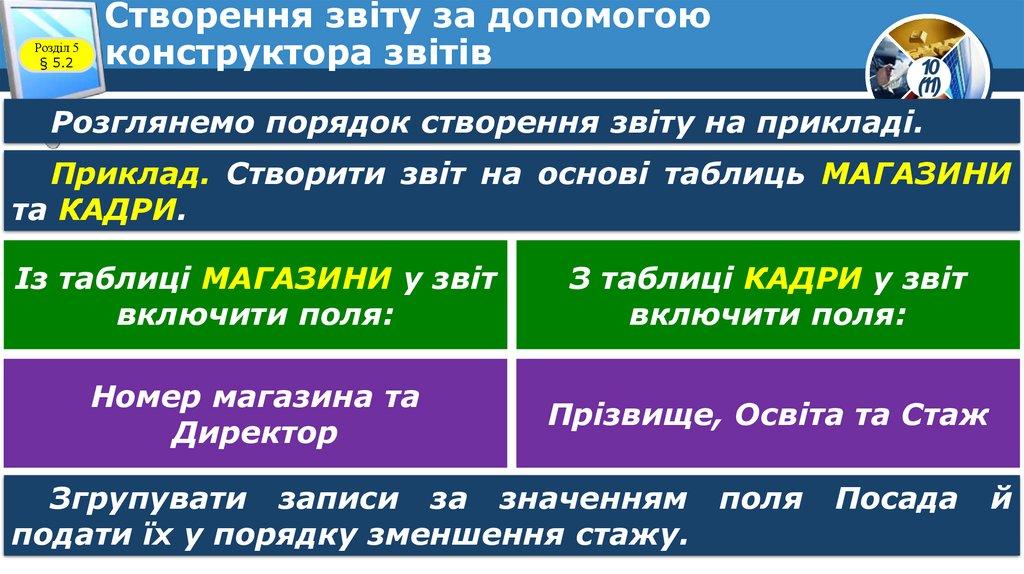 Приклад. Створити звіт на основі таблиць МАГАЗИНИ