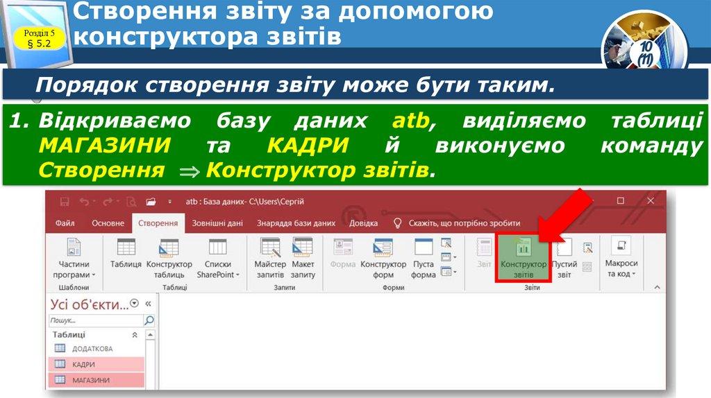 Бази даних. Створення звіту за допомогою конструктора звітів