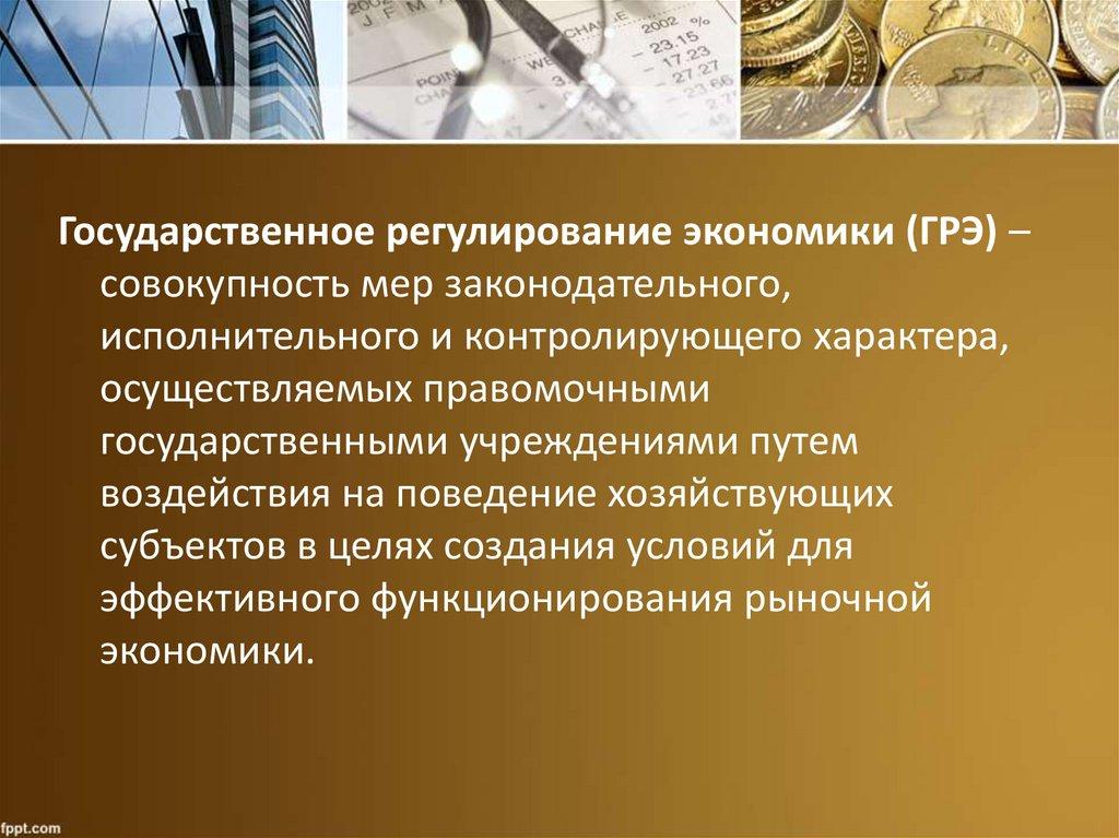 Государственное регулирование экономики (ГРЭ) –совокупность мер законодательного,