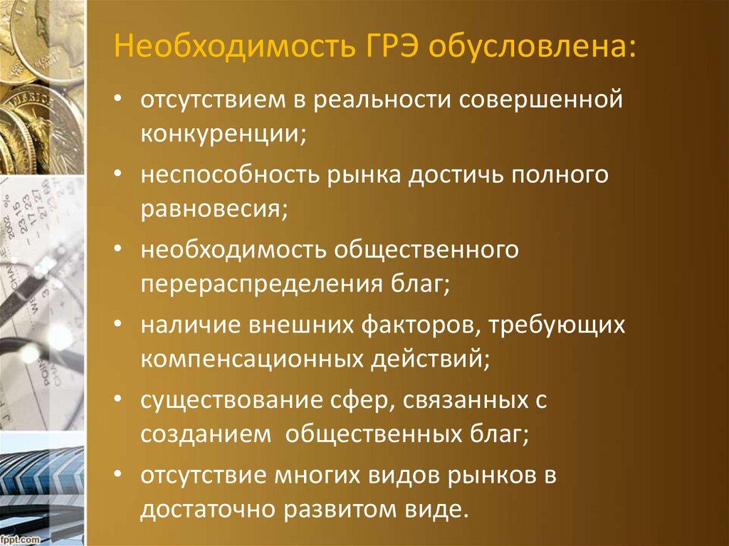 Необходимость ГРЭ обусловлена:• отсутствием в реальности совершенной