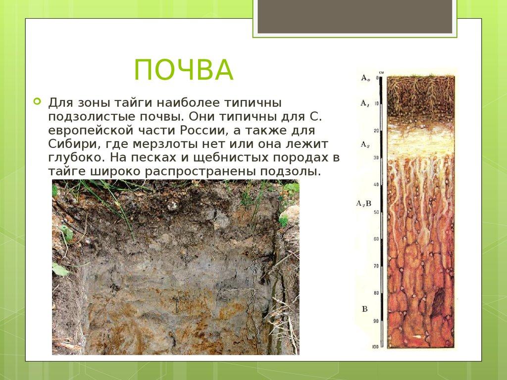 ПОЧВАДля зоны тайги наиболее типичны