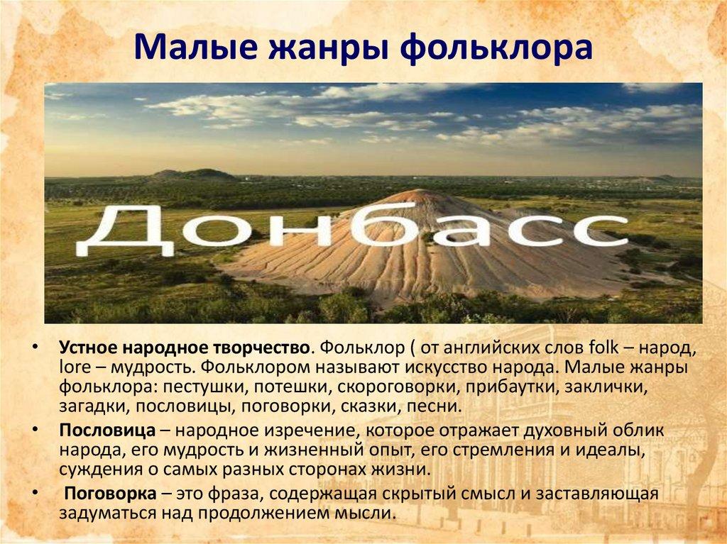 lore – мудрость. Фольклором называют искусство народа. Малые жанры
