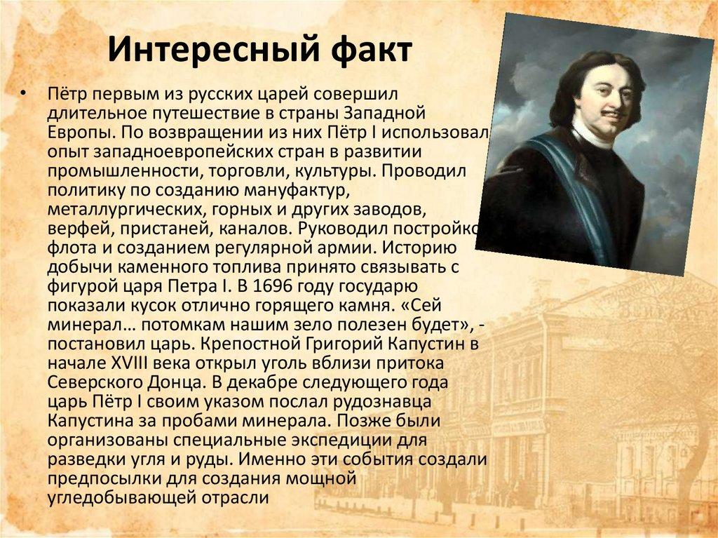 минерал… потомкам нашим зело полезен будет», постановил царь. Крепостной Григорий Капустин в