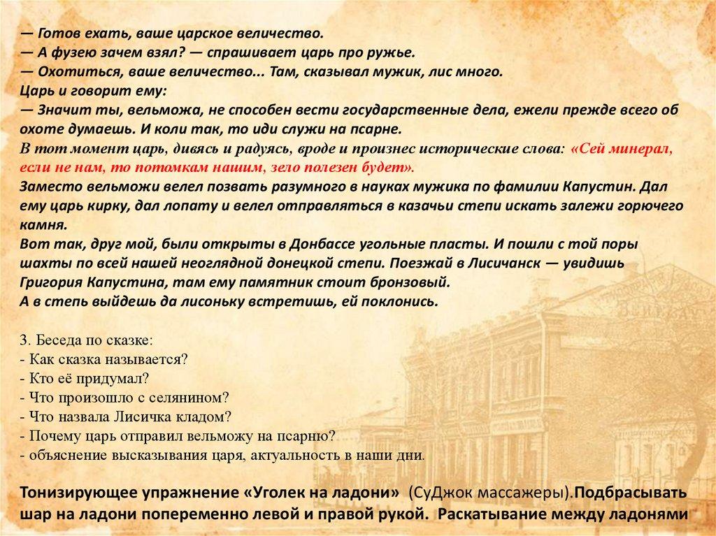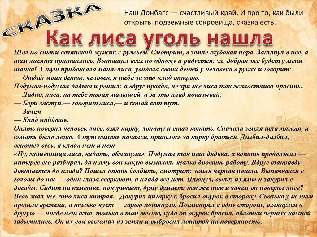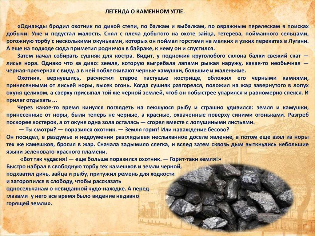 ЛЕГЕНДА О КАМЕННОМ УГЛЕ.«Однажды бродил охотник по дикой степи, по балкам и выбалкам, по овражным перелескам в поисках