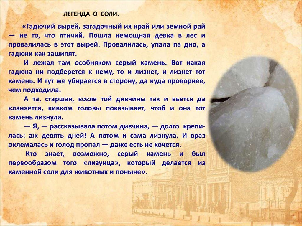 ЛЕГЕНДА О СОЛИ.«Гадючий вырей, загадочный их край или земной рай