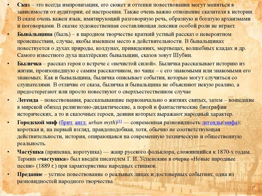 слушателями. В отличие от сказа, быличка и бывальщина не объясняют некую реалию, а