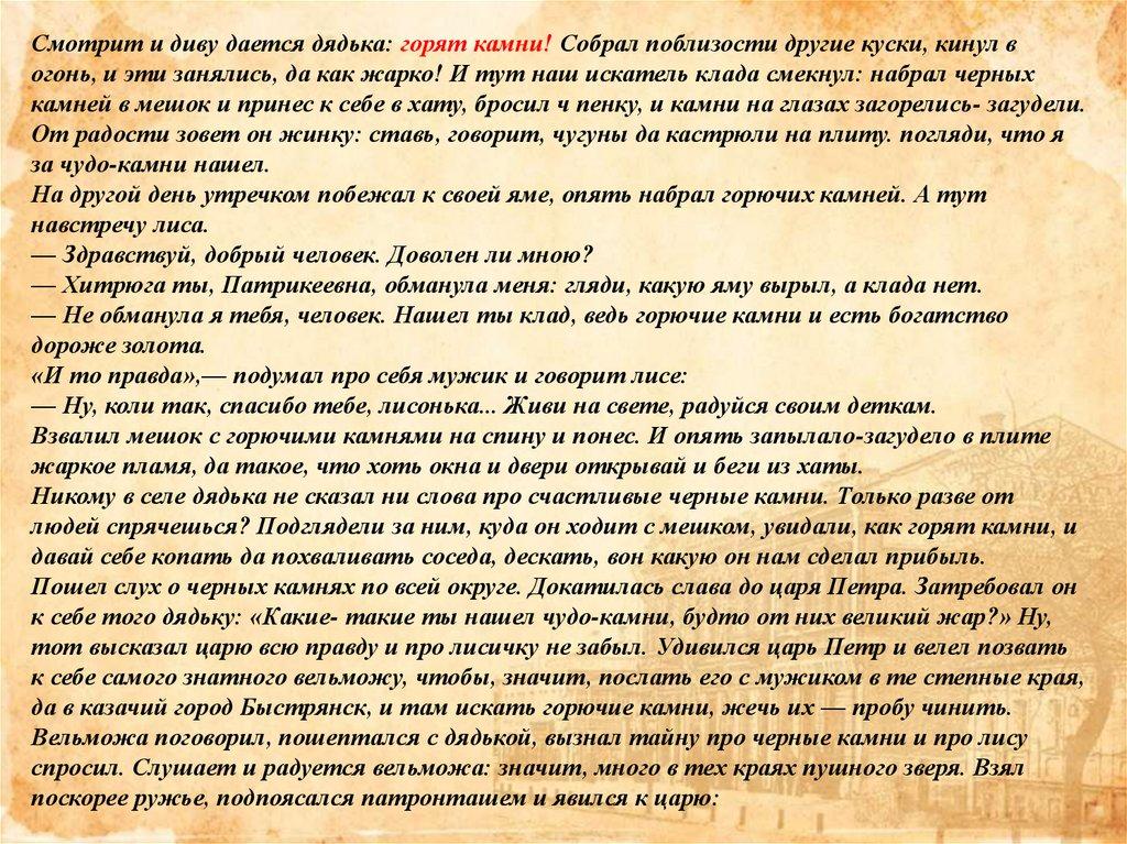 Сказ – это всегда импровизация, его сюжет и оттенки повествования могут меняться в