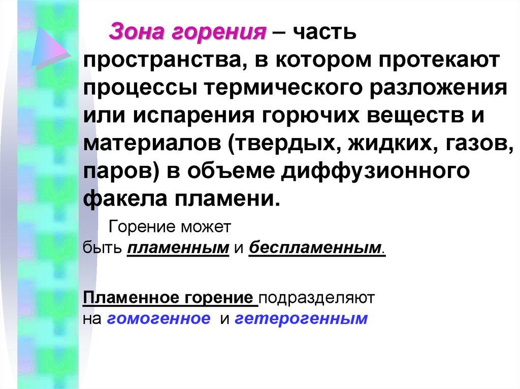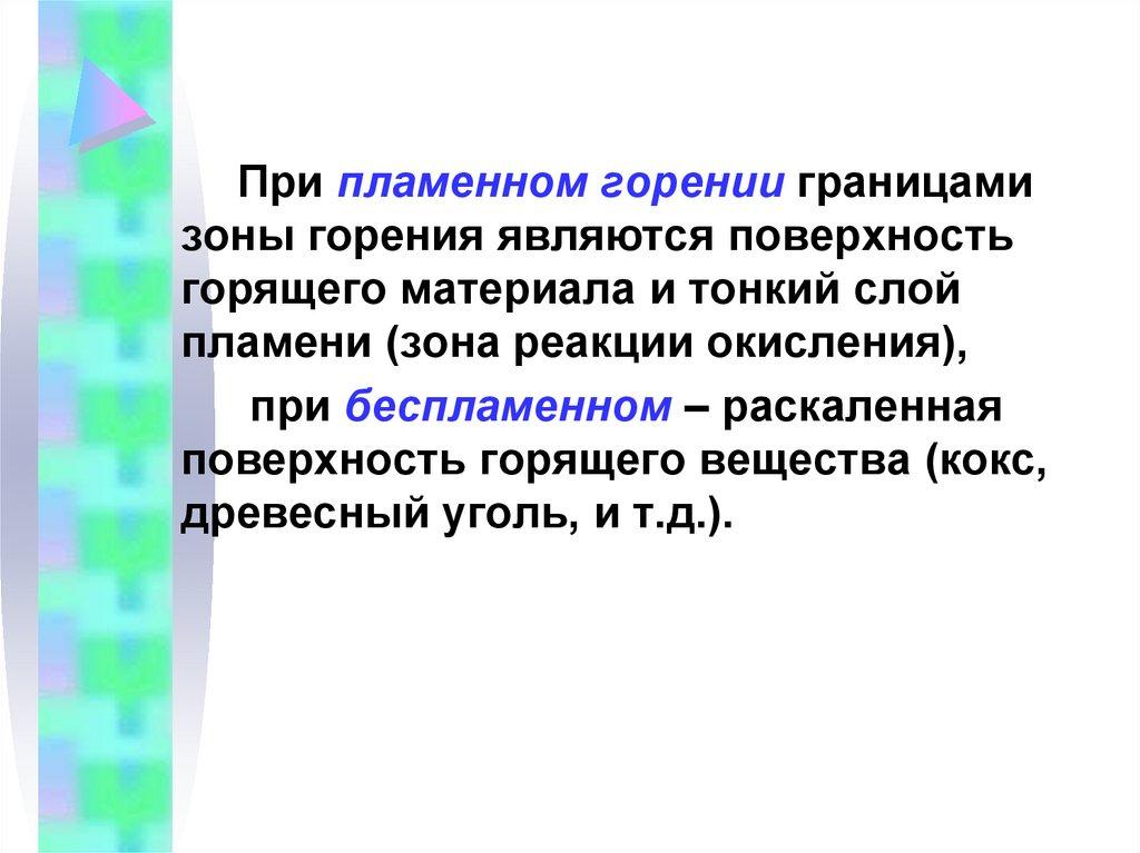 • Пламя — видимая зона горения, вкоторой наблюдается свечение и