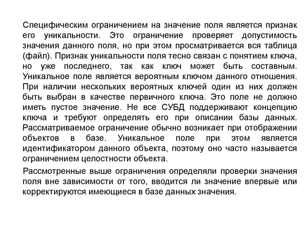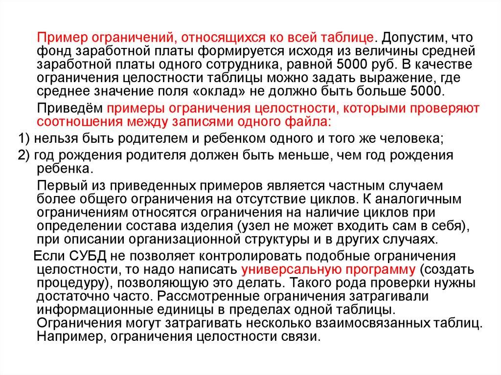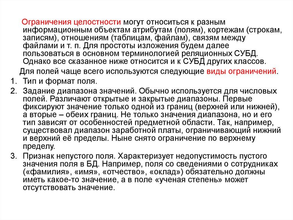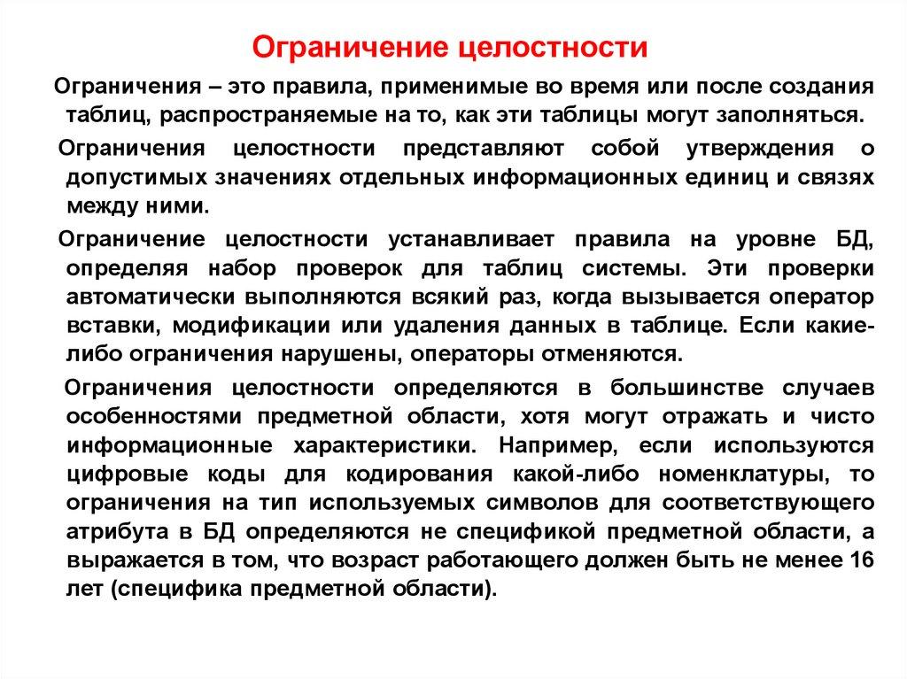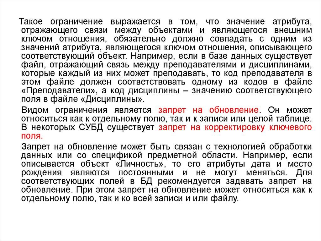Такое ограничение выражается в том, что значение атрибута,отражающего связи между объектами и являющегося внешним