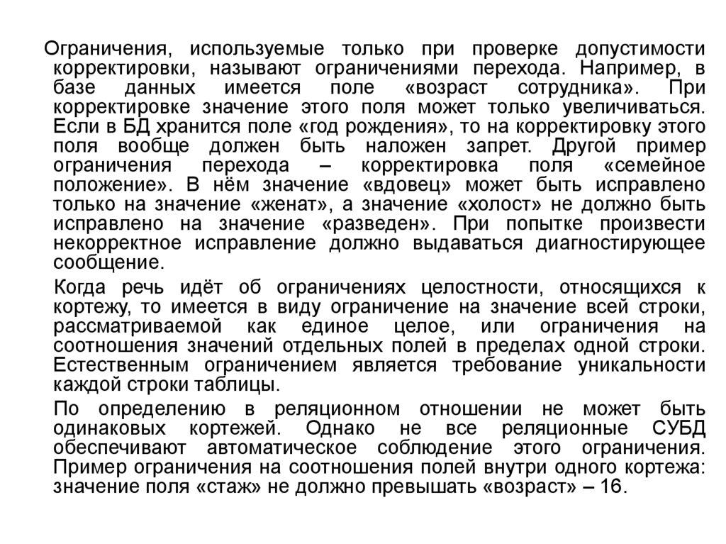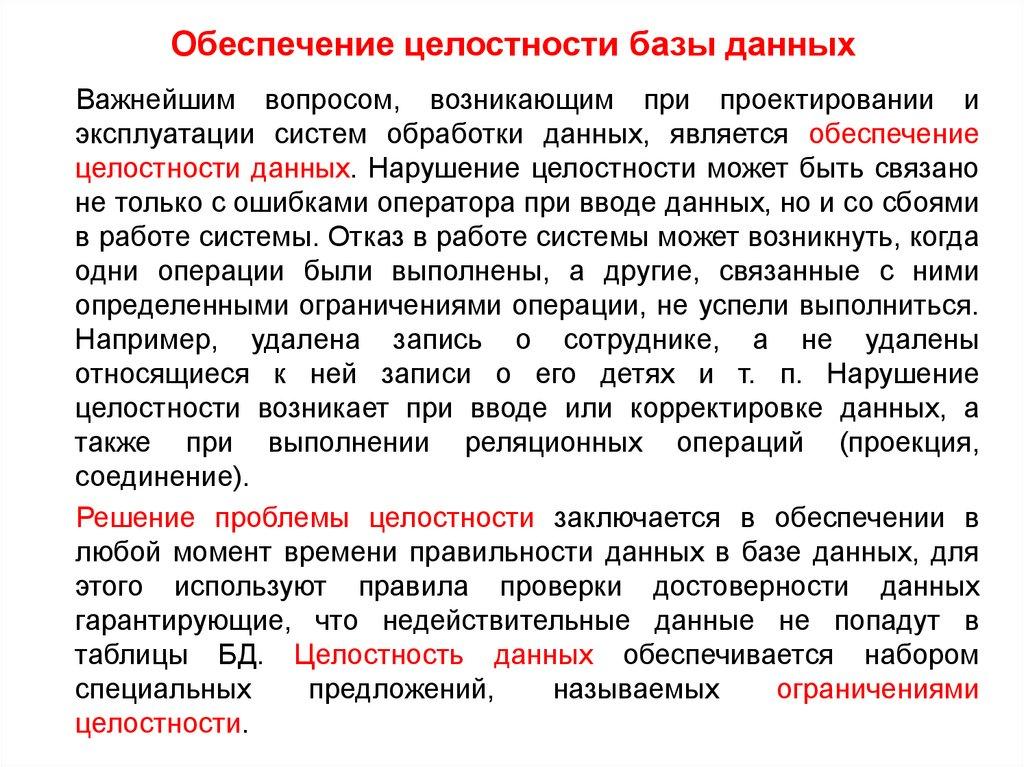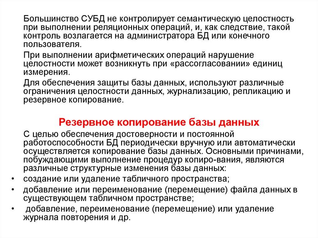 Большинство СУБД не контролирует семантическую целостностьпри выполнении реляционных операций, и, как следствие, такой