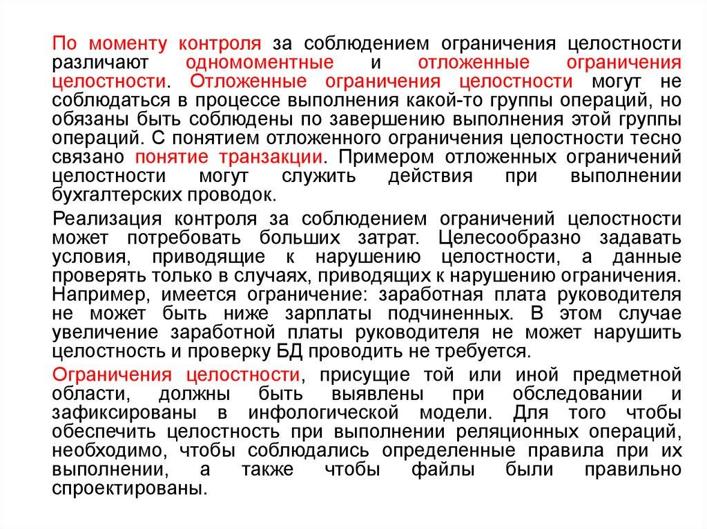 По моменту контроля за соблюдением ограничения целостностиразличают