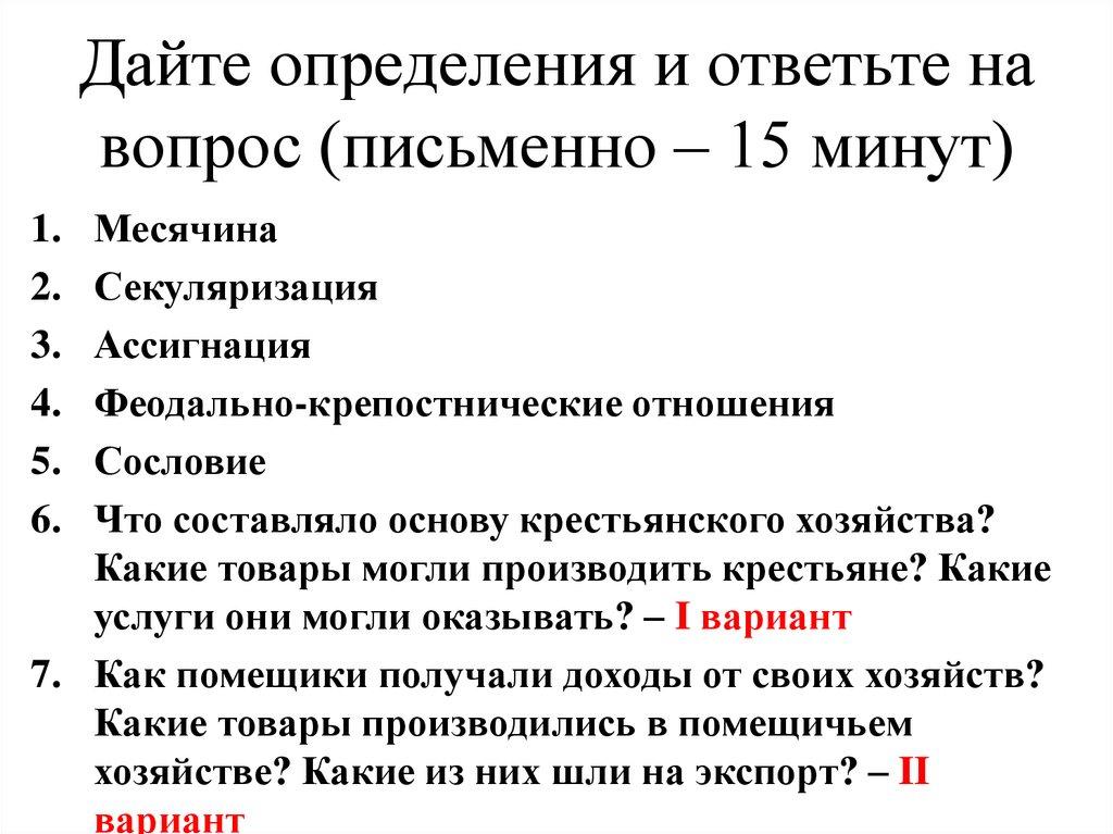 2. Дайте определения и ответьте на вопрос (письменно – 15 минут)