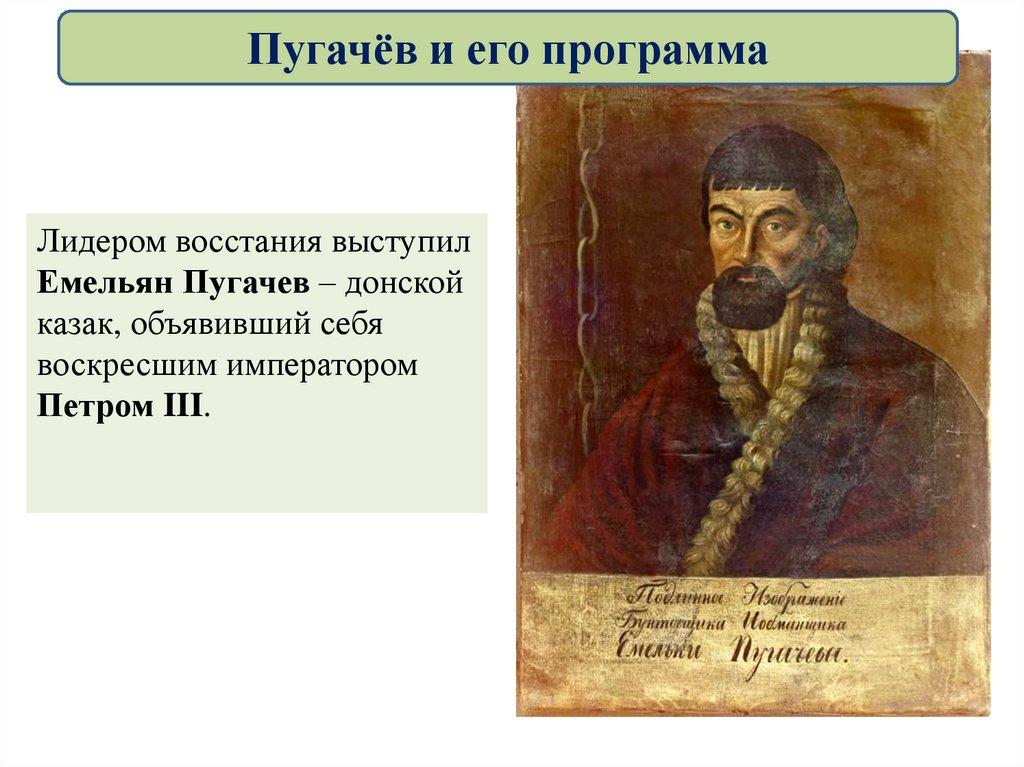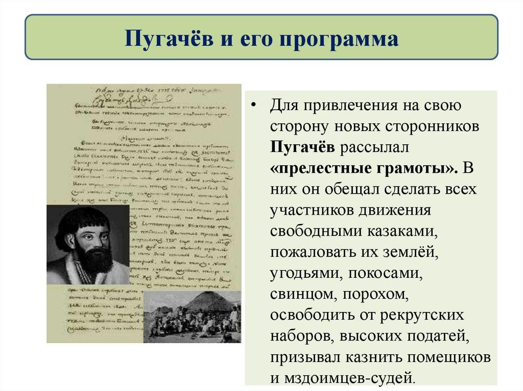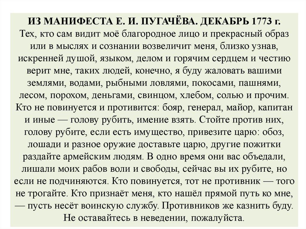 весьма консервативны. Вместе с тем призывы Пугачёва, его