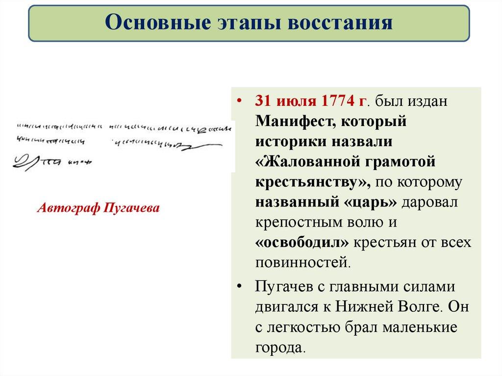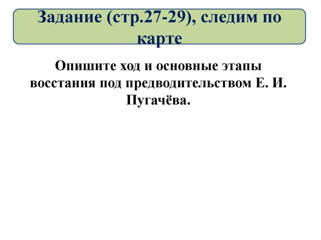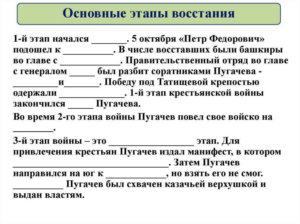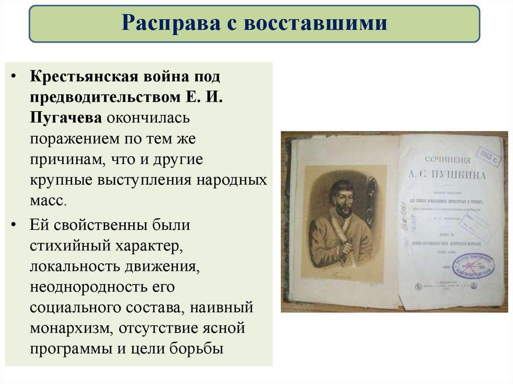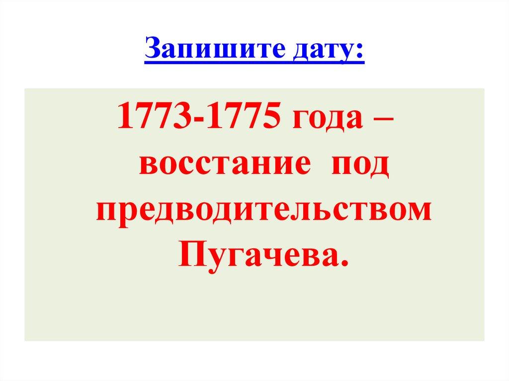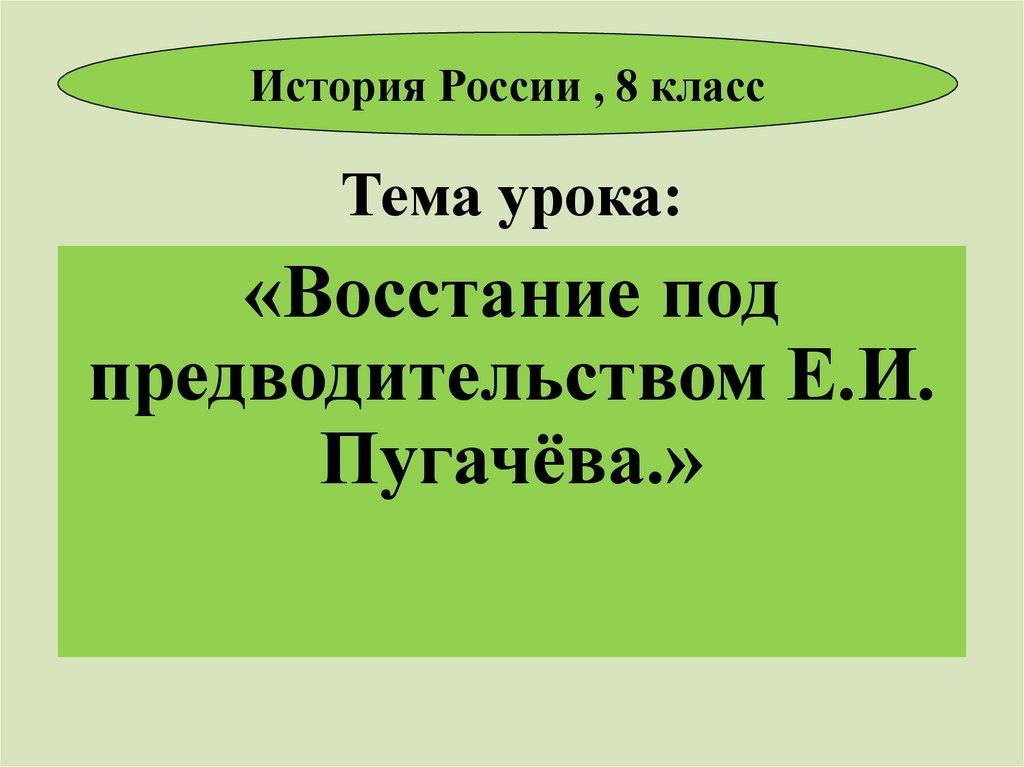 Восстание под предводительством Е.И. Пугачёва. 8 класс