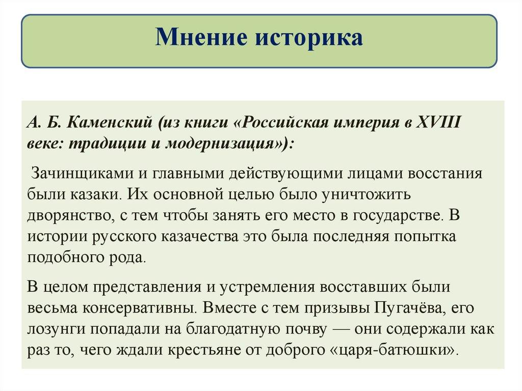 Мнение историкаА. Б. Каменский (из книги «Российская империя в XVIII