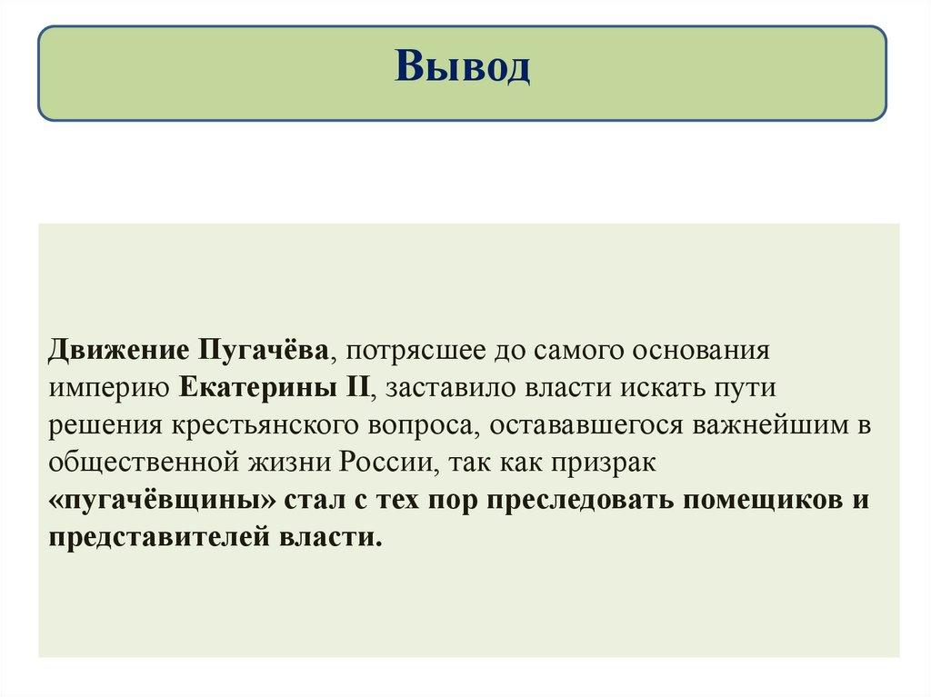 ВыводДвижение Пугачёва, потрясшее до самого основания