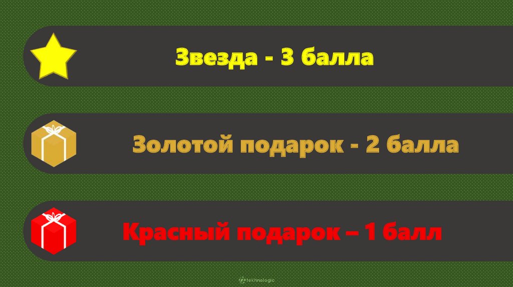 Звезда - 3 баллаЗолотой подарок - 2 балла