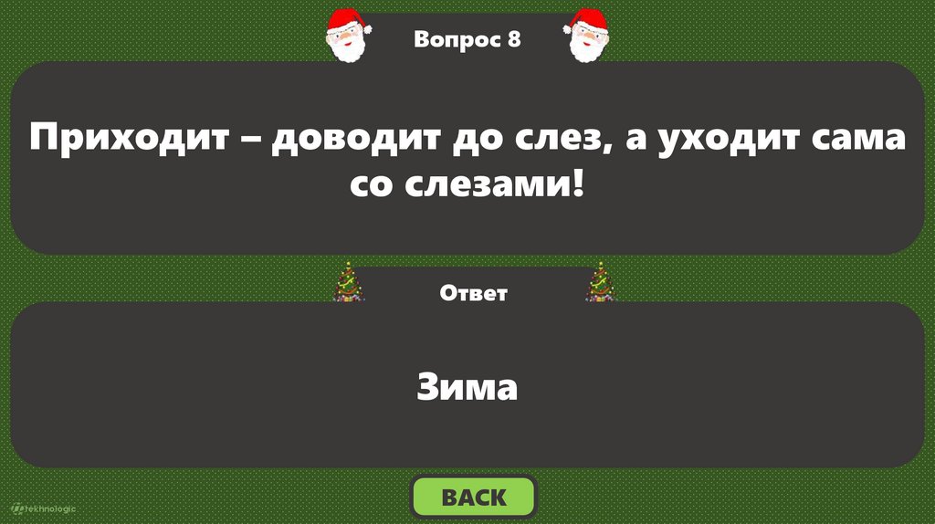 Вопрос 8Приходит – доводит до слез, а уходит сама