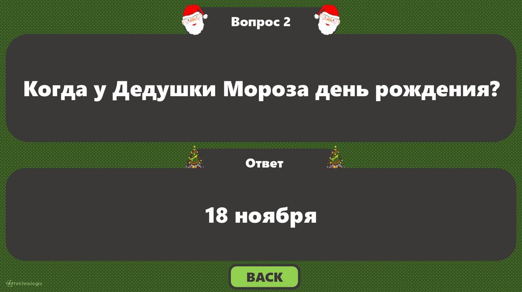 Вопрос 2Когда у Дедушки Мороза день рождения?