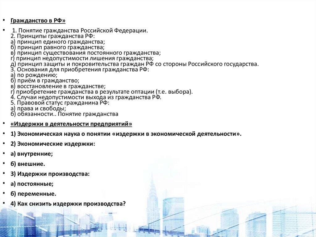 • Гражданство в РФ»• 1. Понятие гражданства Российской Федерации.