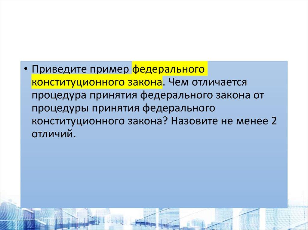 • Приведите пример федеральногоконституционного закона. Чем отличается