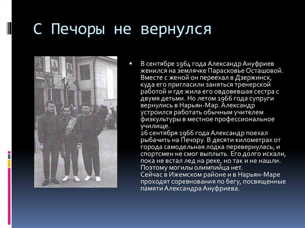 С Печоры не вернулсяВ сентябре 1964 года Александр Ануфриев