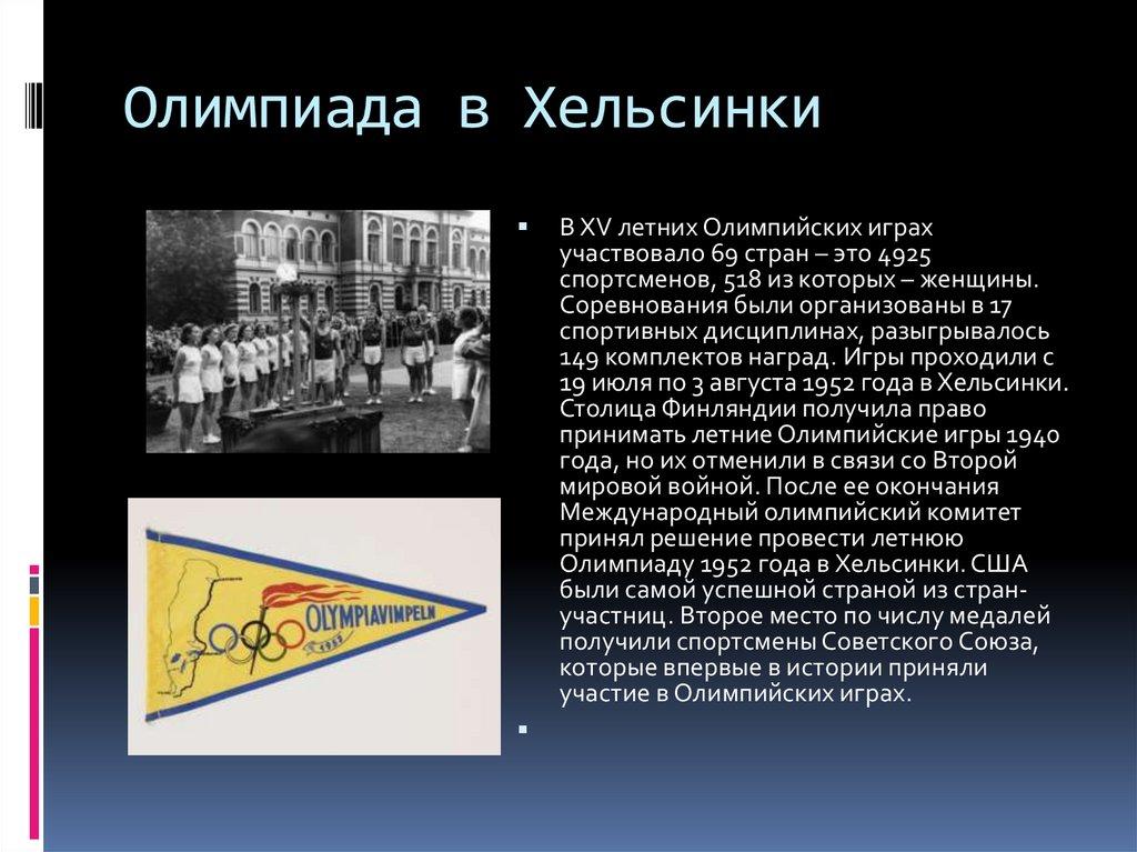 Олимпиада в ХельсинкиВ XV летних Олимпийских играх