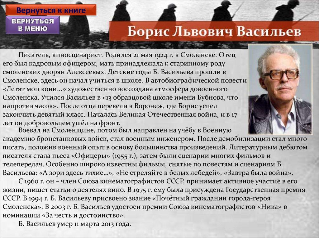 Смоленска». В 2003 г. Б. Васильев удостоен премии Союза кинематографистов «Ника» в