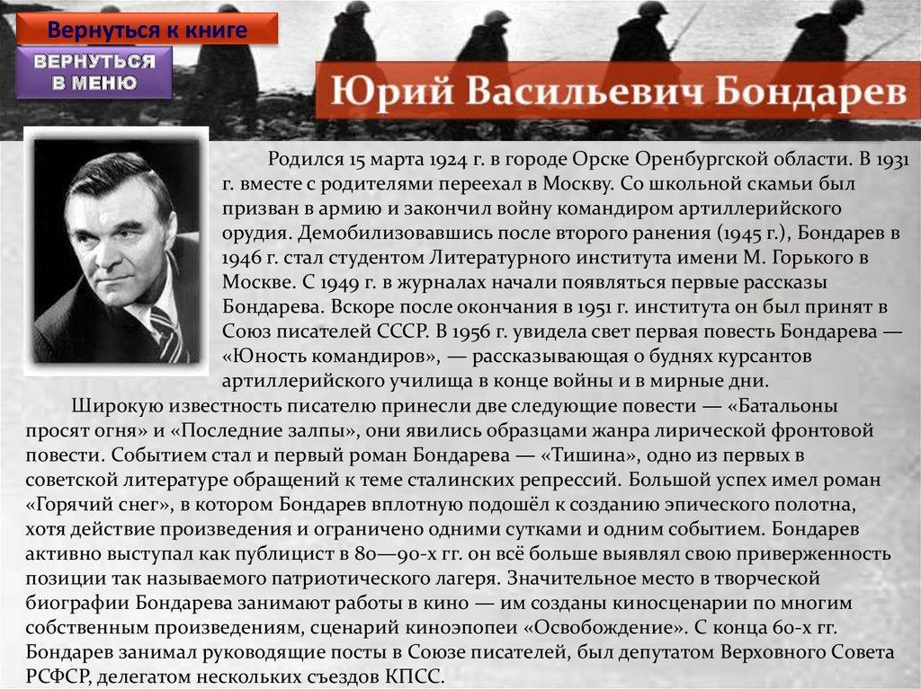 орудия. Демобилизовавшись после второго ранения (1945 г.), Бондарев в