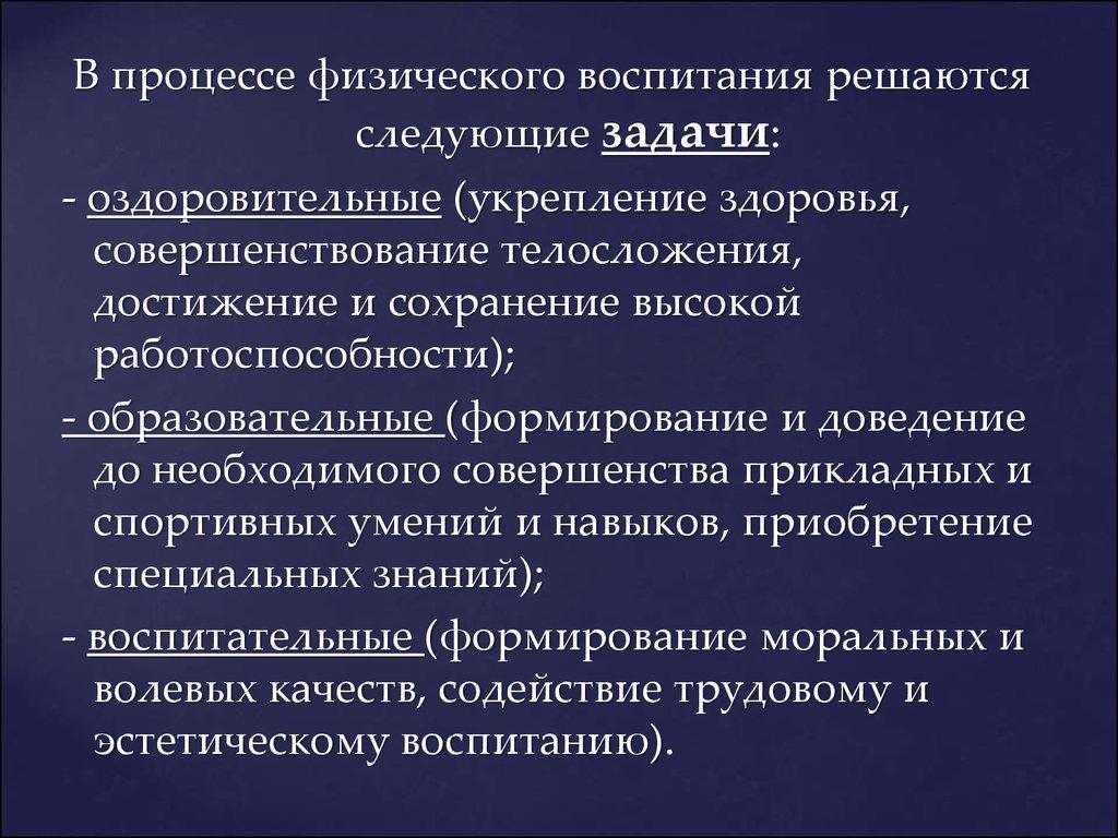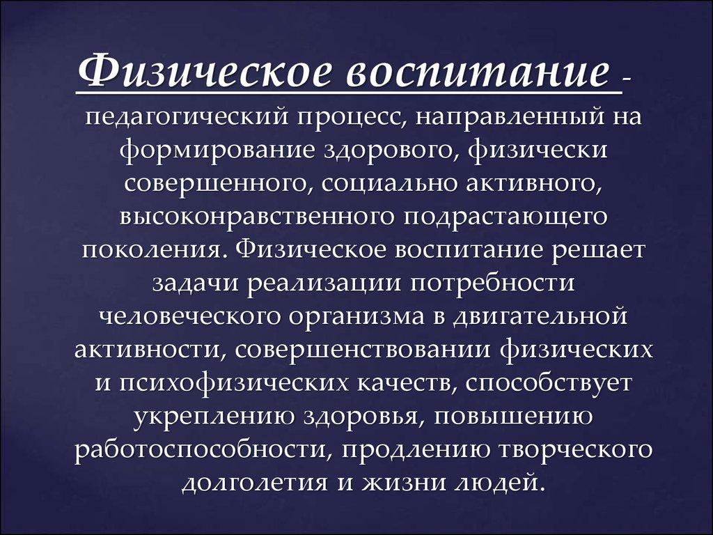 Физическое воспитание педагогический процесс, направленный наформирование здорового, физически