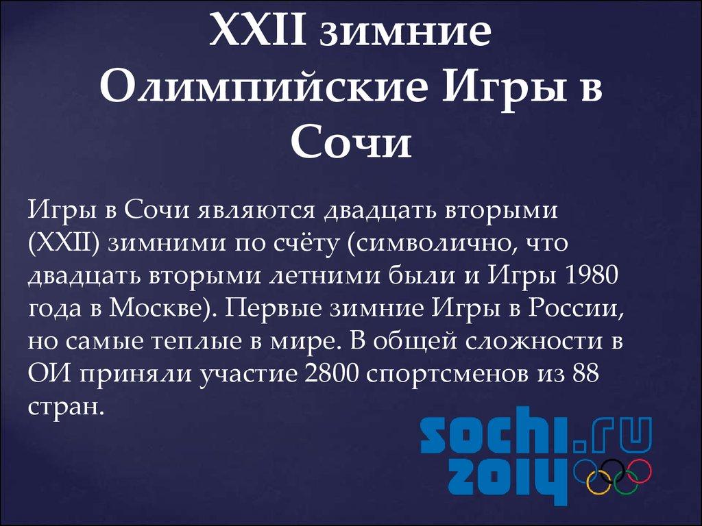 84. Итоги зимних XXII Олимпийских Игр в Сочи