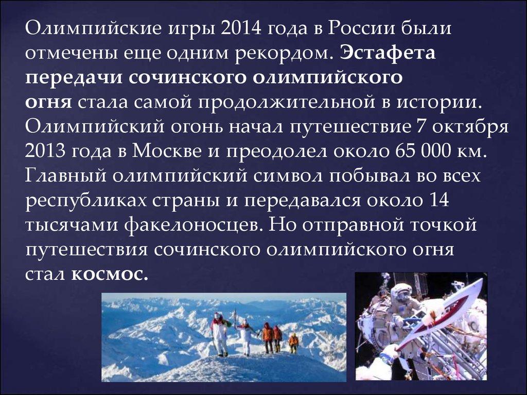 Олимпийские игры 2014 года в России былиотмечены еще одним рекордом. Эстафета