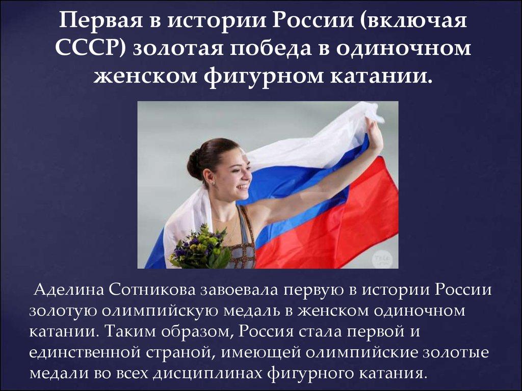 88. Первая в истории России (включая СССР) золотая победа в одиночном женском фигурном катании.